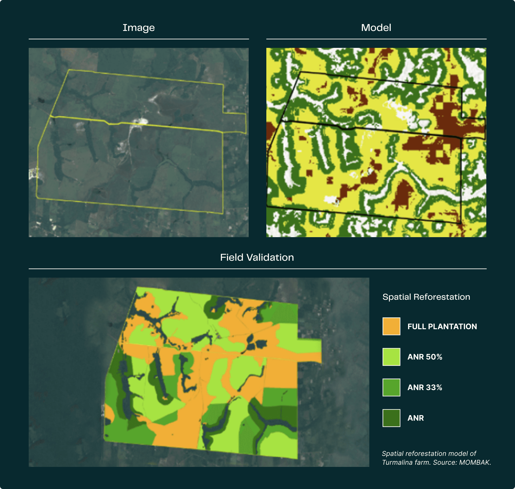 The Mombak project buys or leases degraded cattle pasture in the state of Pará and reforests it using native Brazilian species. The project focuses on land in two, high-priority geographic clusters: the Mãe do Rio northern region and a future more southern region in the Amazon. Mombak employs a proprietary, spatially-explicit reforestation model that defines where to implement different reforestation methods that leverage natural regeneration potentials.