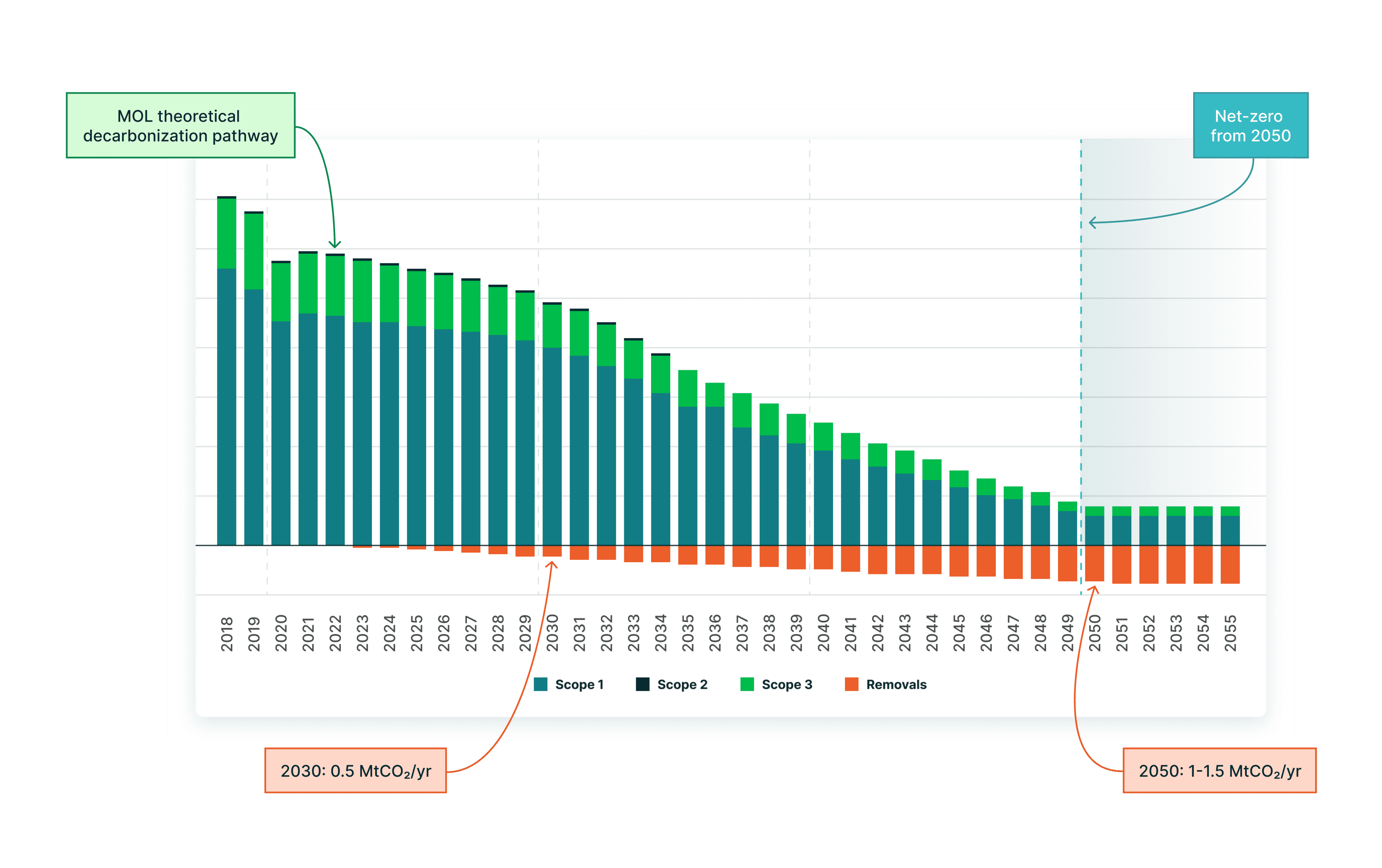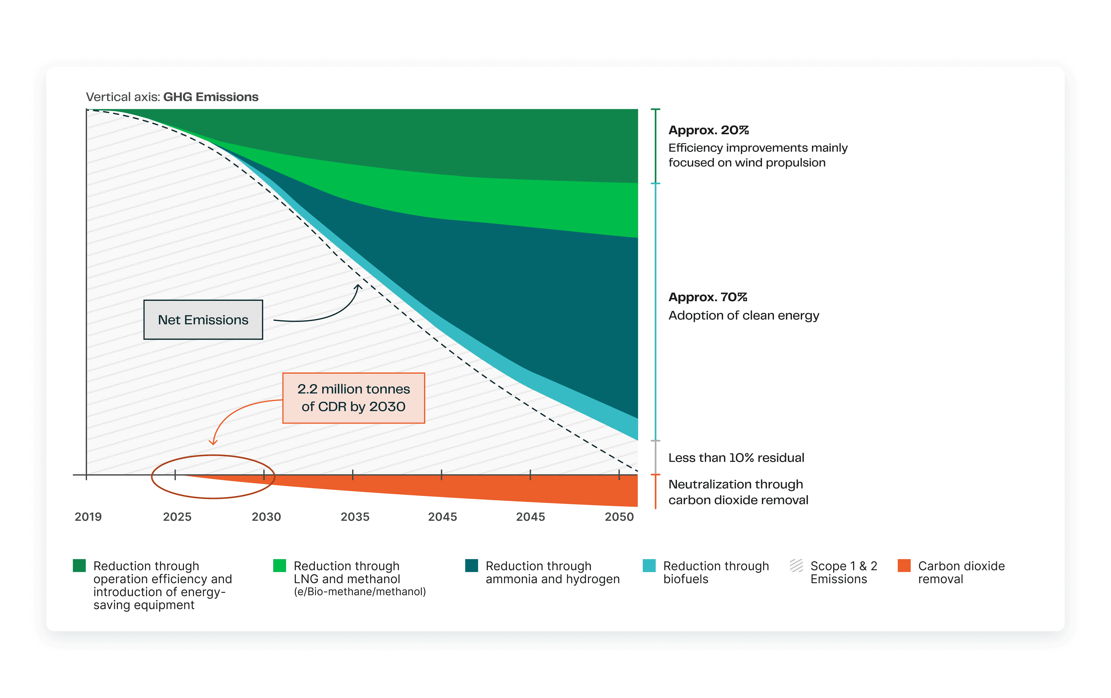 While Scope 1 emissions reductions are critical to MOL Group’s decarbonization strategy, they still anticipate residual emissions that will need to be removed to achieve net zero.